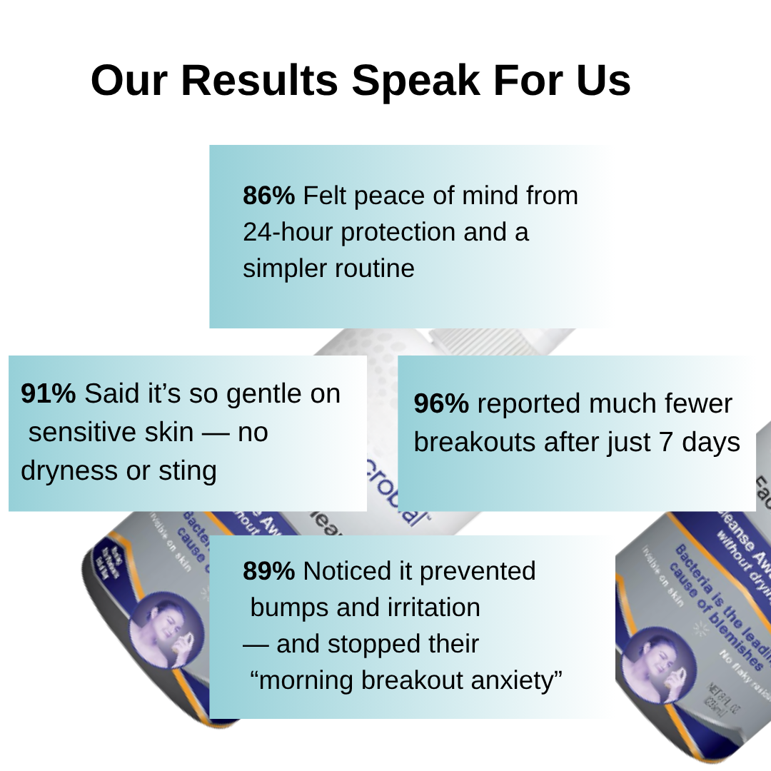 It’s gentle enough for daily use — but powerful enough to keep 99.99% of acne-causing bacteria away.
